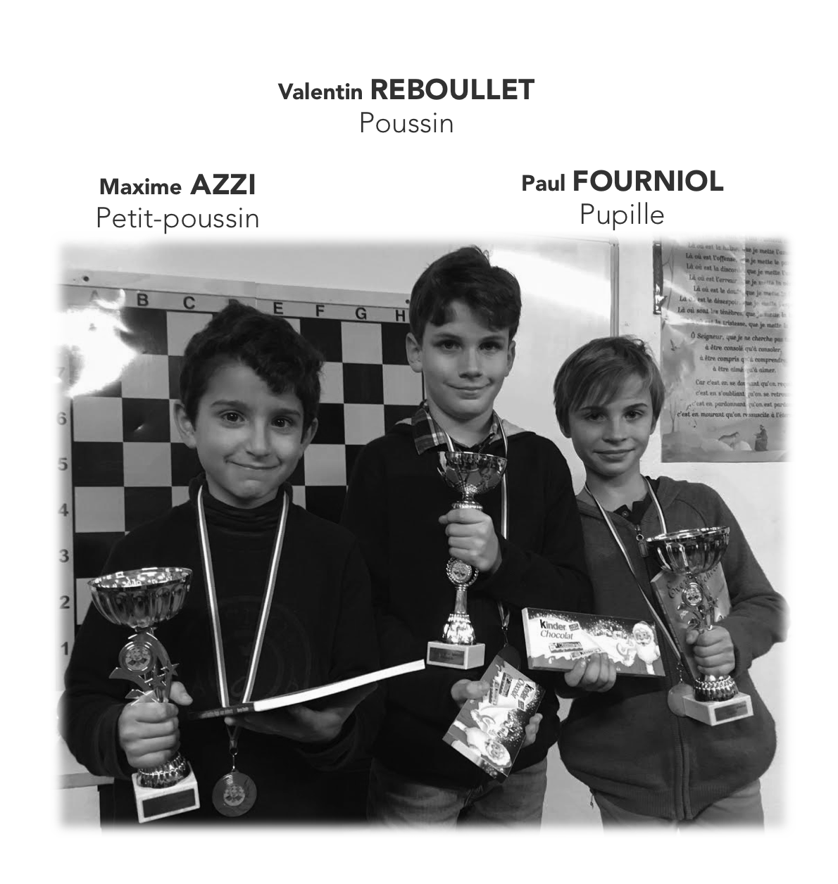 Quatre joueurs terminent avec 4 points et provoquent un départage. Paul Fourniol avec les Blancs élimine Maximilien Gavetti, et Martin Varin avec les Noirs en fait autant contre Elliot Gille-Naves. Dans l'ultime combat, Paul Fourniol avec les Noirs se lançait à l'attaque des Blancs avec succès, la Dame décimant les troupes ennemies. Puis, lentement, les Blancs revenaient à l'équilibre matériel mais tombaient au temps !